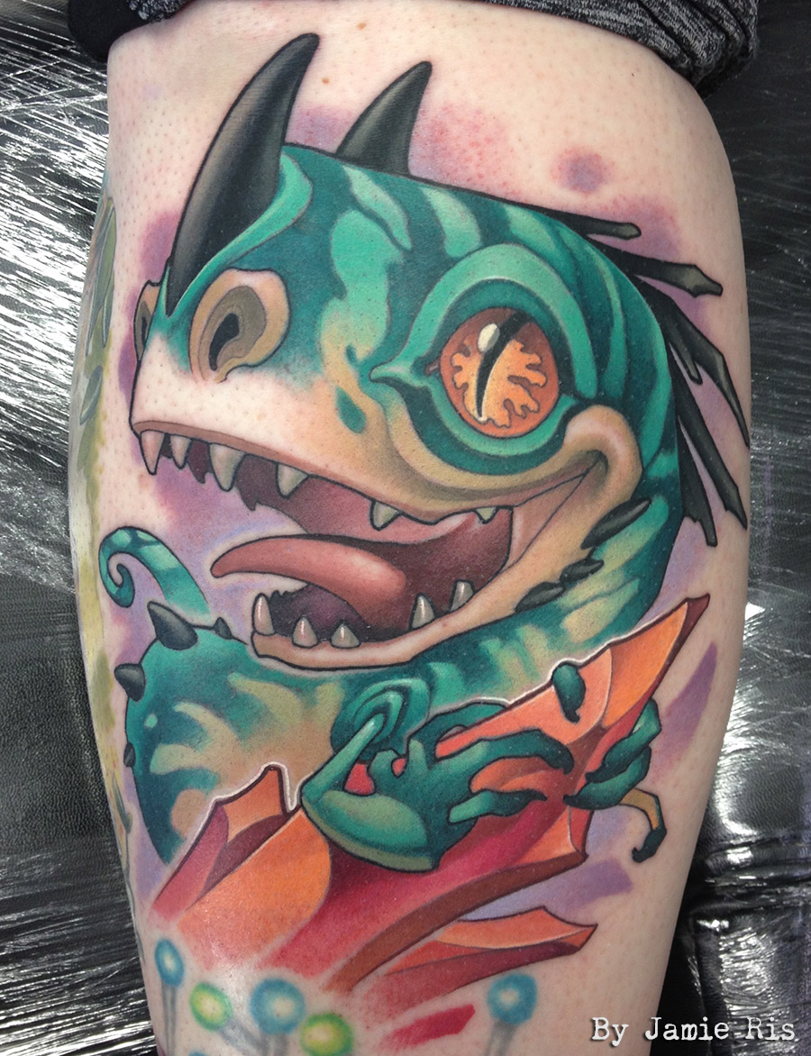 Son père est son mentor: il lui apprend le tattoo, lui fait découvrir de nombreux artistes du tatouage mais surtout de bandes dessinées et de la sculpture. Jamie recherche le plus souvent l’inspiration dans d’autres arts que le tatouage. « Dans le « newschool », tous les artistes se connaissent entre eux. Ils sont tous connectés et donc s’inspirent les uns des autres mais parfois quand tu regardes une autre forme d’art, tu trouves de nouvelles idées » nous confie-t-il.