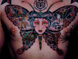 En 2008. Mary Joy (tatoueuse à Tattoo City) a mon dernier tatouage, un phenix. On vient toujours me voir à ce sujet, c’est très flatteur, mais je réponds généralement:« J’étais là suffisamment longtemps, vous auriez pu m’appeler alors ». Il y a quelques années, les gens me disaient: « Vous êtes le seul à pouvoir le faire ! ». Mais aujourd’hui ? Non, il y a des milliers de tatoueurs qui peuvent le faire.